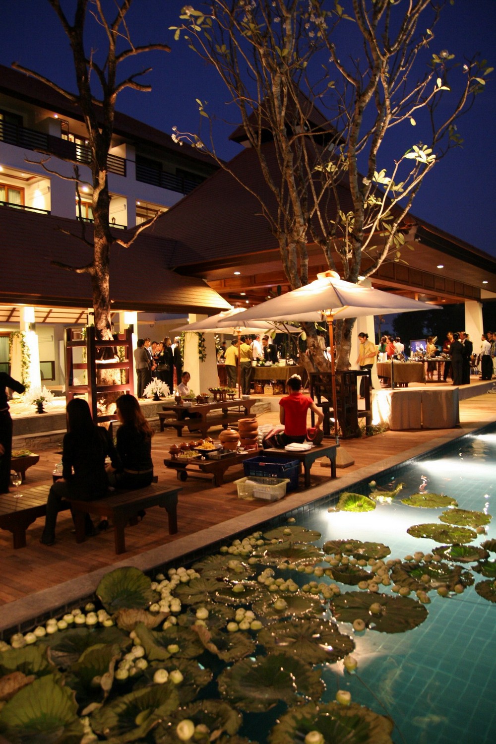 Our three meeting rooms can accommodate groups up to 150 with a theater layout, or 90 for a sit-down dinner. Our Riverside lawn is available for cocktail parties for 200 or dinner for 150 guests. Our traditional and western menus will ensure your event is perfectly catered to your tastes and expectations. We also offer wedding packages including a traditional Northern Thai ceremony. Travel by covered boats to your exclusive Reception at the ancient temple, Wat Jedi Liem.